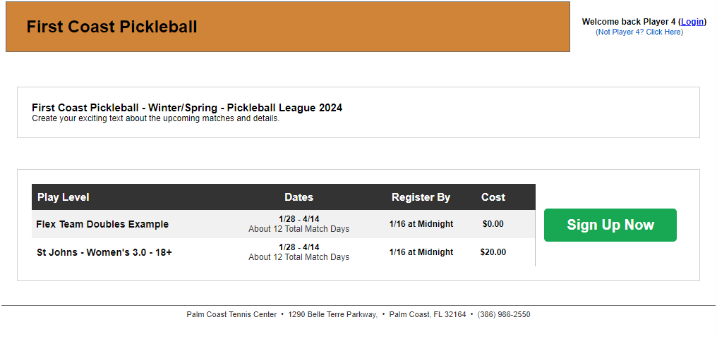 Now you will be back to your dashboard, where you can perform player or captain duties.